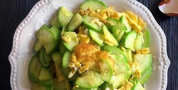 3、起鍋燒油,油溫5成熱,放入打散的雞蛋,轉小火,將雞蛋炒至7成熟,將西葫蘆再放入鍋中翻炒均勻。接著盛出,一道美味的西葫蘆炒雞蛋就做好瞭。
