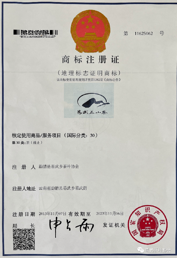 易武茶葉協會所註冊的地理標志“易武正山茶”