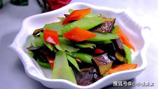 2加入花椒油炒香幹透,加入焯過水的芹菜片炒勻。