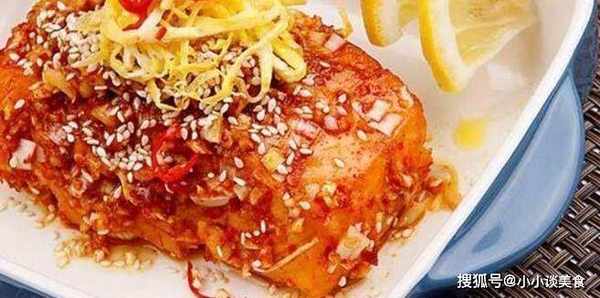 5.炒鍋中留少許油,放入少許清湯,加食鹽、糖、番茄醬、食醋,燒沸後,用濕淀粉勾芡,加入熱油少許推勻,出鍋澆在魚肉上,撒上松子即可。