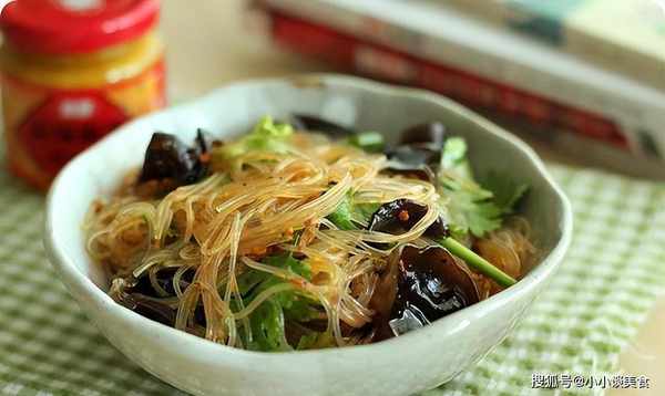 材料:粉絲2束、木耳1束、大蔥、香菜、藤椒油、辣椒油、生抽、香油