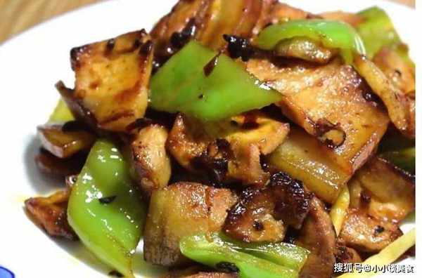 5、五花肉上鍋煮熟後,放入洗凈的青椒塊和蒜苗,翻炒均勻,加入3克白糖,炒至五花肉熟透,即可盛上裝盤吃。這道菜很好吃,下飯,回鍋肉做好瞭,你學會瞭嗎?