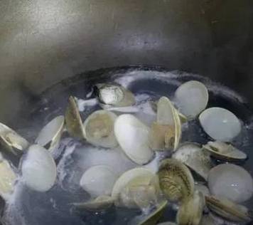 3、再往鍋中放入洗幹凈並吐過沙的蛤蜊。