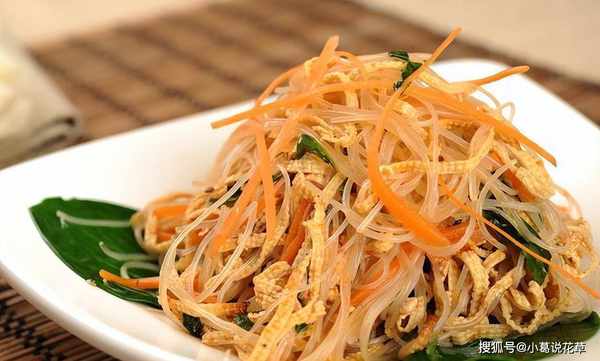 做法:1、胡蘿卜切成細絲,豆腐皮對半切開,再切成細絲,大蒜切碎備用。