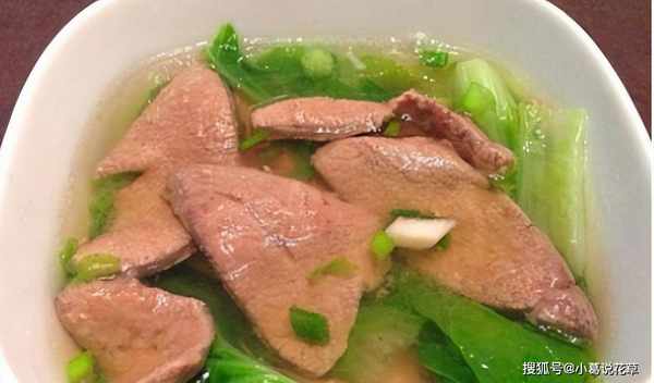 6、鍋底放蔥花、少量雞精和鹽,倒入煮好的豬肝湯拌勻。