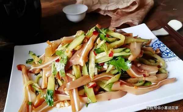 配料表:炸豬肉、黃瓜、香菜、鹽、辣椒油、蒜頭、生抽、米醋、糖實用:1、準備好所需材料後,將黃瓜、香菜洗凈,切條。如果直接剁大蒜,就把豬耳朵切成條狀;