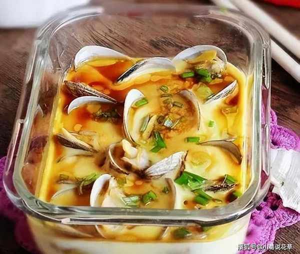 材料:雞蛋2個,文蛤10隻,鹽3克,料酒1/2湯匙,薑2片,蔥1根,植物油1湯匙,蒸魚醬油1/2匙,胡椒粉1克