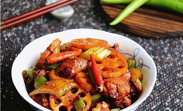 1.洗凈後,將幼鴨切成小塊,五花肉切成稍厚的片;生薑、鮮紅辣椒斜切成大片,蔥打成節備用。2、鍋內放茶油燒熱,先將鴨腿和鴨舌煎熟,再倒入剩下的鴨塊全部翻炒出油,燒少許料酒;
