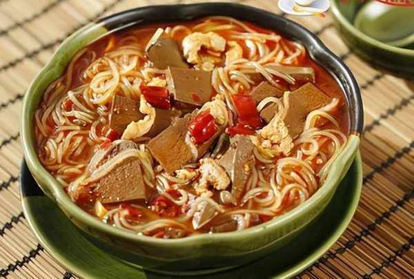 制作:肉絲加入適量鹽、淀粉、生抽、料酒拌勻醃制;平底鍋燒熱,加入適量油,放入1勺豆瓣醬和蒜末炒香。炒紅油後加入清水煮3分鐘;將粉條放入鍋中煮熟;加入肉絲煮至變色,然後加入鴨血煮1或2分鐘,然後加鹽調味。