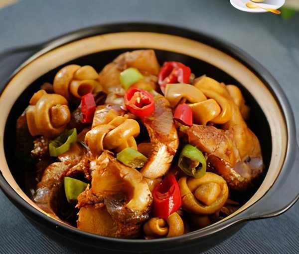 制作:牛筋放入冷水鍋中焯水,加入薑片去腥;熱鍋冷油,加入1勺豆瓣醬翻炒出紅油,放入薑片、八角、香片等。炒勻;加入焯過水的牛筋翻炒幾下;加入適量生抽和優質白酒炒勻。加水,蓋上鍋蓋,等高壓鍋開大火,轉小火燜10分鐘;將牛筋放入小鍋中,加入白蘿卜丁,大火煮至白蘿卜熟透收汁。加入適量胡椒粉和鹽調味。