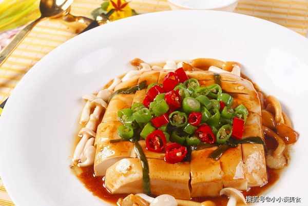 做法:1.將豆腐倒入盤中,用冰水沖洗幹凈備用。