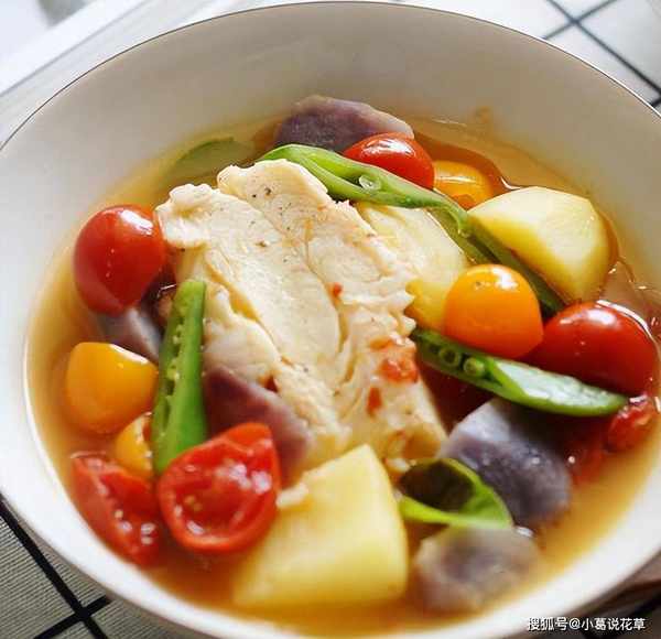 成分:雞湯、紅洋蔥、聖女果、小土豆、土豆、羅勒、粗鹽、現磨黑胡椒、鱈魚片、豌豆莢、檸檬汁、橄欖油