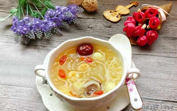【材料】銀耳適量、蓮子適量、紅棗適量、枸杞適量、黃冰糖適量