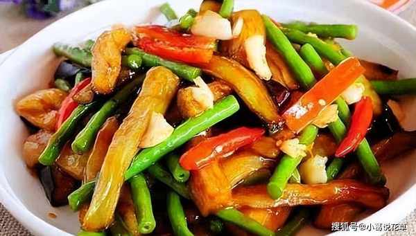 5、鍋內放油,放入蒜、薑末和胡椒粉,將豆子炒軟。6.倒入茄條,加入生抽、蠔油、鹽和五香粉,用文火慢燉至熟軟,勾芡後起鍋。