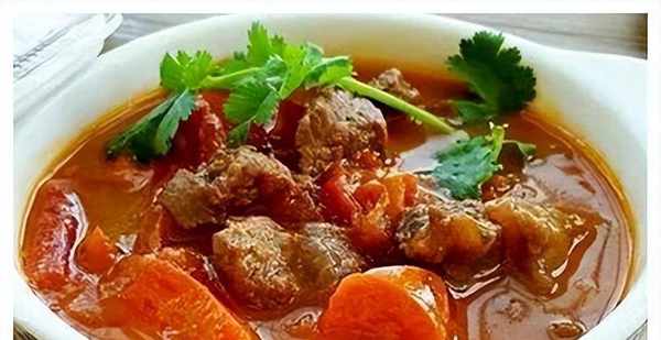 原料:牛肉500克,番茄1個(大),胡蘿卜1根,胡椒粉1撮,薑2片,蔥半個,八角1個,紅酒200毫升,醋少許,胡椒粉適量,適量的油,適量的鹽,適量的水