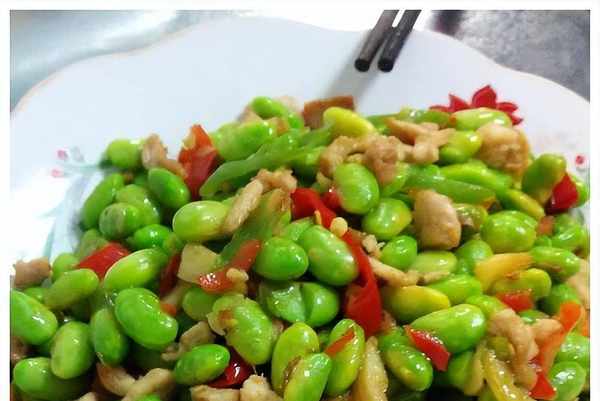 做法:1、材料準備好後,按蒜頭-肉末-青椒(不喜歡太辣可以不放)-毛豆,下鍋翻炒
