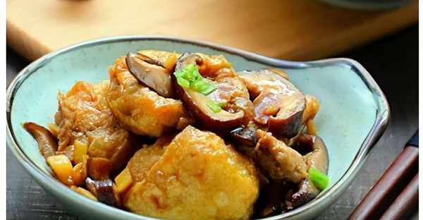 做法:1、豆腐切成小塊,放入油鍋中,用中火炸至表面金黃。