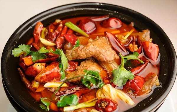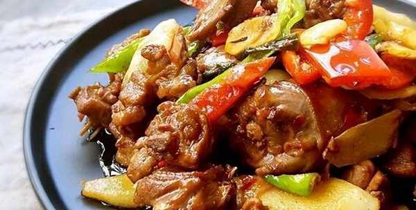 原料:鴨肉、薑片、蔥段、幹辣椒、蔥段、鹽、味精、料酒、五香粉、辣油、辣醬、老抽