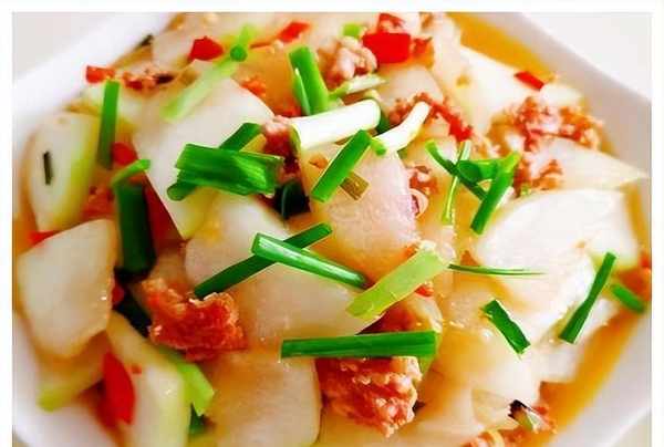 1.將白蘿卜洗凈去皮,切成約10厘米長的一段。5厘米,再切成0.5厘米厚的片,切條。