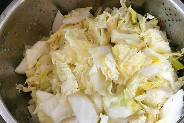 白菜去掉根部和外面的老葉子,洗凈後切成小塊,切好後最好將白菜幫和葉子分開放,炒時也分開下鍋,這樣才能一起熟透;
