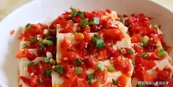 材料:內酯豆腐一盒,材料:剁椒、清蒸魚、水煮芝麻、水煮花生切碎、蔥花、蒜末。做法:1、內酯豆腐切成大片,裝盤,在豆腐片上鋪一層剁椒,放入蒸鍋中火蒸5分鐘,取出倒出盤子裡有多餘的水。2、豆腐放上蔥蒜末,燒熱一鍋熱油,淋上蔥蒜末,淋上蒸魚醬油,撒上芝麻和花生碎。