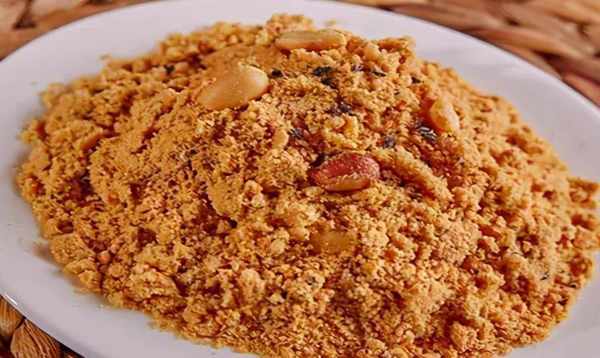 準備食材:面粉500克,白糖150克,桂花10克,芝麻25克,核桃仁10克,香油50克。