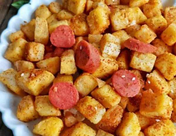 步驟:1、土豆切塊,蒸熟,放入碗中,用勺子搗爛備用。