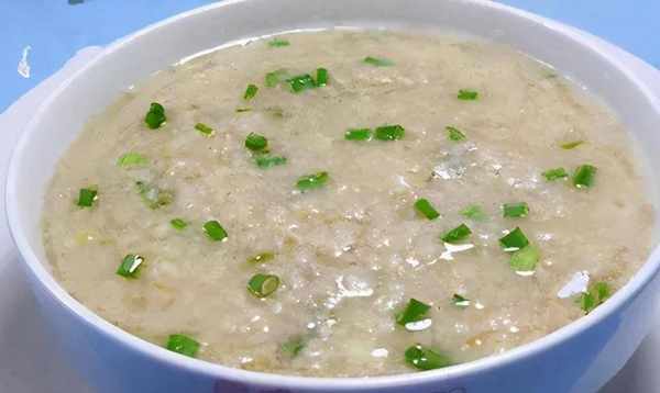 2、將燕麥洗凈,然後用250克水浸泡,放入鍋中,加水500克用小火煮成粥。再加入肉湯、鹽、胡椒粉、味精再煮。煮至材料變軟,然後撒上切碎的蔥即可食用。