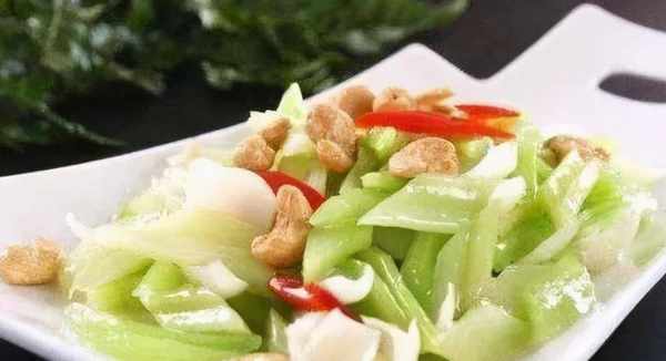 3、冷鍋加入適量的油。當油加熱到50%熱時,將芹菜放入鍋中炒約60秒,然後加入百合,炒勻後撈出。