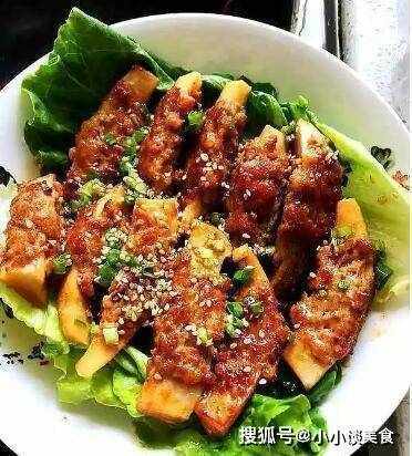做法:1、豆腐洗凈,切成1.5厘米的方塊,放入開水鍋中焯一下,撈出瀝幹。