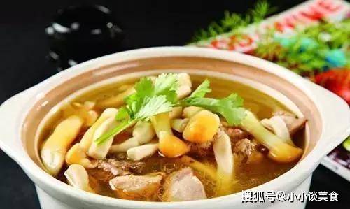 3、鍋內燒熱雞油,放入雞塊炒至水氣蒸發,再加入茶樹菇炒香,再加入鮮湯煮沸,下入雞油菌。然後放在小火上煮一個小時。