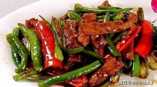 2、平底鍋放花生油,先炒紅辣椒片和蒜片,再放入羊肉,蓋上250克高湯,加鹽和醬油炒至湯汁濃稠。加入味精、生粉包衣,淋上香油。