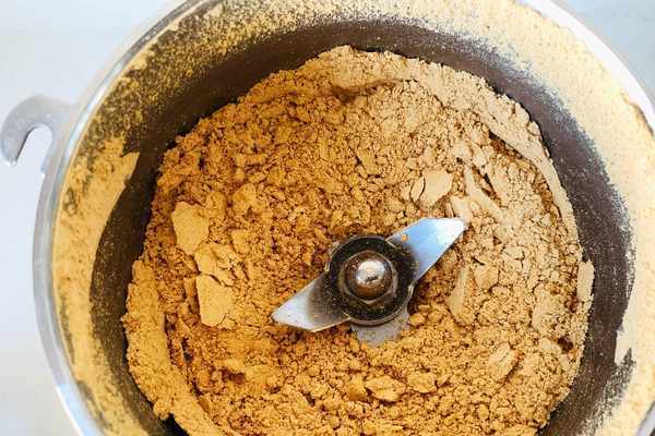 5、用傢中的研磨機將將炒熟的黃豆研磨成細膩的黃豆粉。