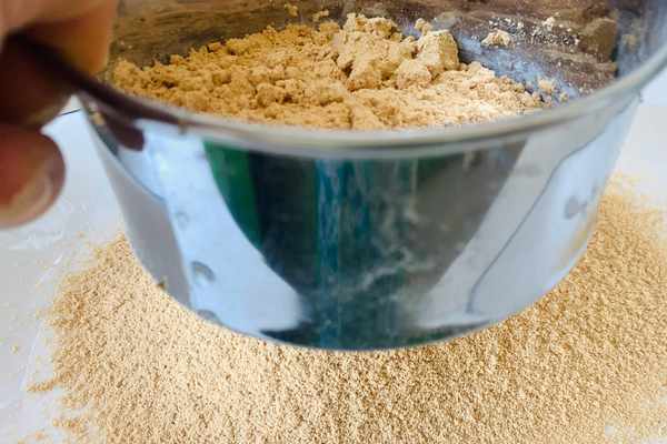 6、研磨好的黃豆粉再過篩,吃起來口感更細膩。