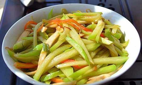 3.倒入佛手瓜翻炒至變色變軟,加入蠔油、鹽和雞精。