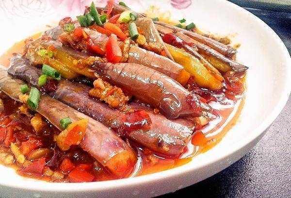 材料:青椒8個、小米椒2個、茄子2個、大蒜2個(切碎)、香醋、香油、醬油、酒花椒油、鹽、味精。