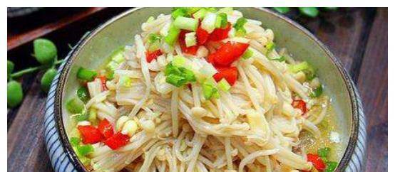 4.鍋內放水。燒開後將金針菇放入焯水一分鐘