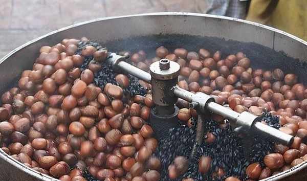如今糖炒栗子的加工過程,似乎已經很難看到瞭。但我清楚記得童年時,自傢附近有一傢國營食品店。每到初冬,店門口就擺出一口缸一樣的大鍋,裡面永遠翻滾著棕紅色的栗子,還有黝黑油亮的細沙。