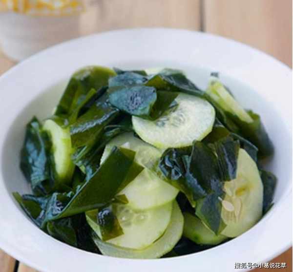 食材:裙帶菜(幹)、黃瓜、米醋、食鹽、芝麻油、蒜泥