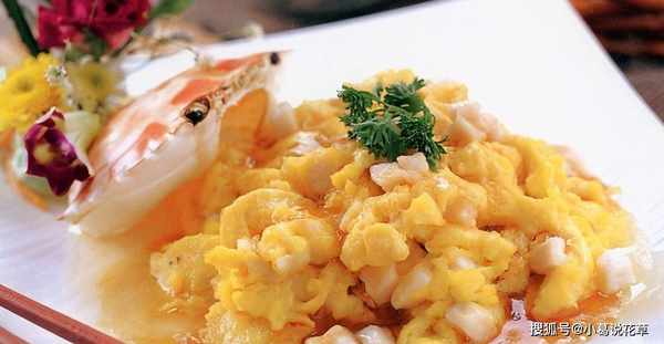 3.鍋中再放油燒熱,下薑末爆香,放紹酒、香醋、味精,倒入蛋清和蛋黃,炒至水汽漸幹,蛋上發亮即成。