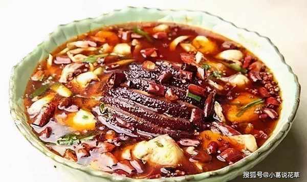 3、鍋裡倒色拉油燒至五成熱,投入幹辣椒節和花椒熗香,倒在燒白和魚片上即成。