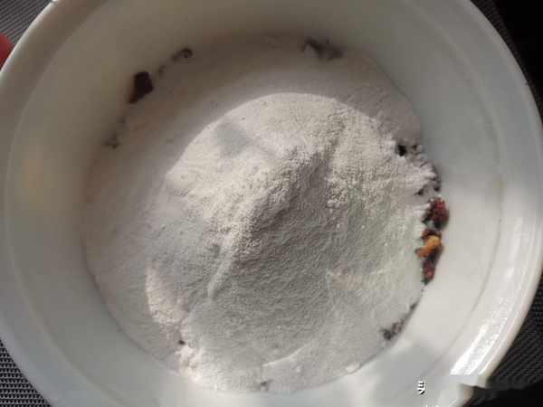 第二步:把糯米粉加入到紅豆和紅棗中。