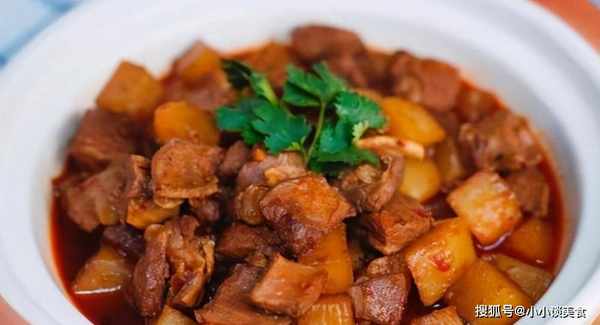 6、蓋上蓋子,燉1個小時,期間註意翻動幾次,防止鍋底焦掉,加入蘿卜塊,繼續燉半小時,如果湯還是很多,可以開大火燒,這樣湯汁收幹的快一點。