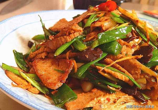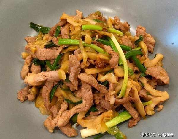 2.幹凈鍋內燒熱植物油,加入熟豬肉片炒至出油卷曲,加入郫縣豆瓣、豆豉和甜面醬炒香,加入肉末下鹽菜炒香,加老抽,加味精、雞精、白糖,生蒜苗炒香,出鍋放入鏟狀容器中,即成。