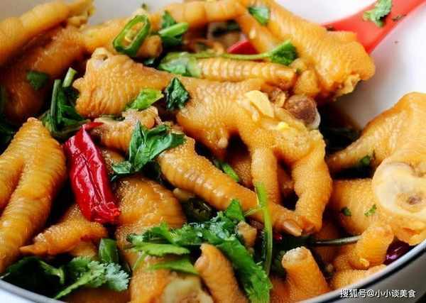 材料:鳳爪約450g,料酒1湯匙,生薑6片,冰塊適量,蒜頭,幹辣椒,辣椒,香菜