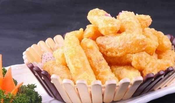 ④用中火炸至金黃熟透,撈出。擺入盤中備用。