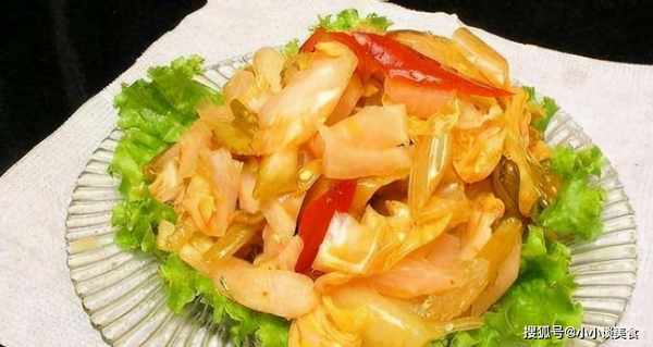 4.加入卷心菜翻炒至一半。加鹽、醋、生抽、糖調味