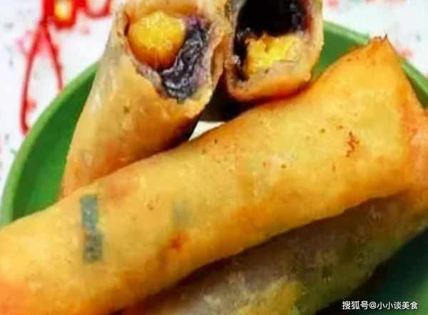 材料:春卷皮、香蕉、豆沙、面粉適量。