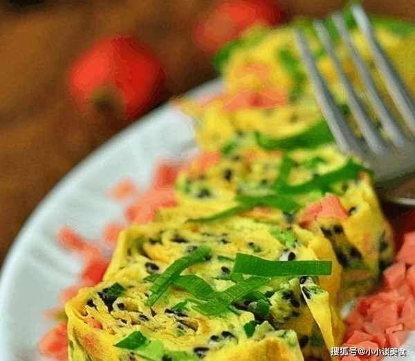 方法1.打三個雞蛋。加入適量鹽、蔥花、芝麻拌入蛋液中。
