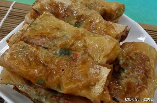 6、春卷用小火慢慢煎至兩面金黃,撈出瀝油。